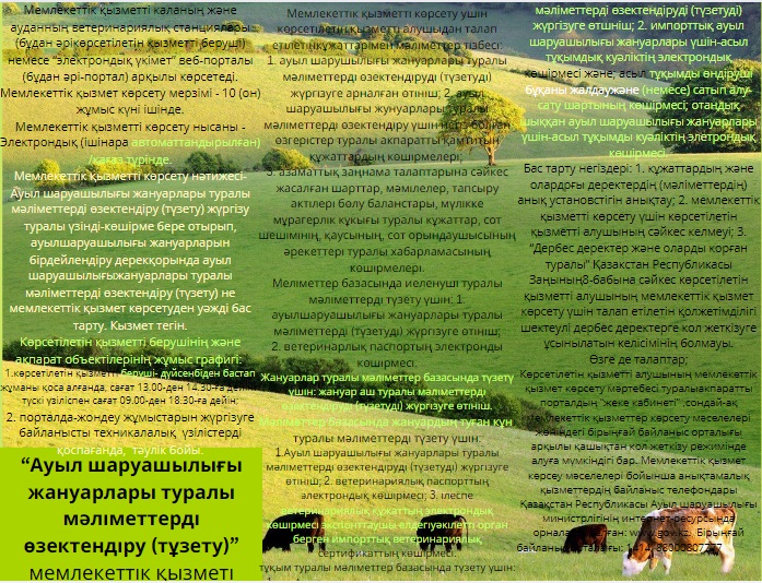 жануарлары туралы мәліметтерді өзектендіру (түзету)" мемлекеттік қызмет көрсету