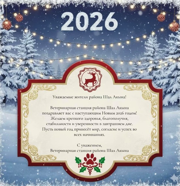 Шал Ақын ауданының ветеринариялық станциясы сіздерді келе жатқан 2026 Жаңа жылмен шын жүректен құттықтайды!