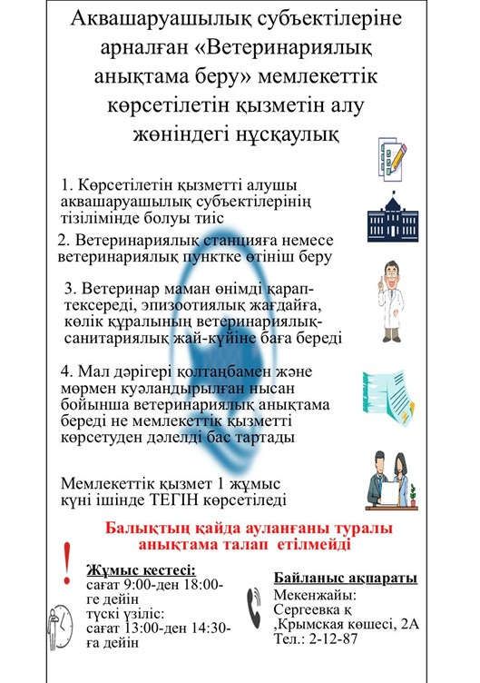 Аквашаруашылық субъектілеріне арналған «Ветеринариялық анықтама беру» мемлекеттік көрсетілетін қызметін алу жөніндегі нұсқаулық