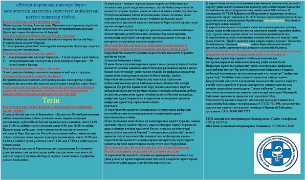 «Ветеринариялық паспорт беру» мемлекеттік қызметін көрсетуге қойылатын негізгі талаптардың тізбесі
